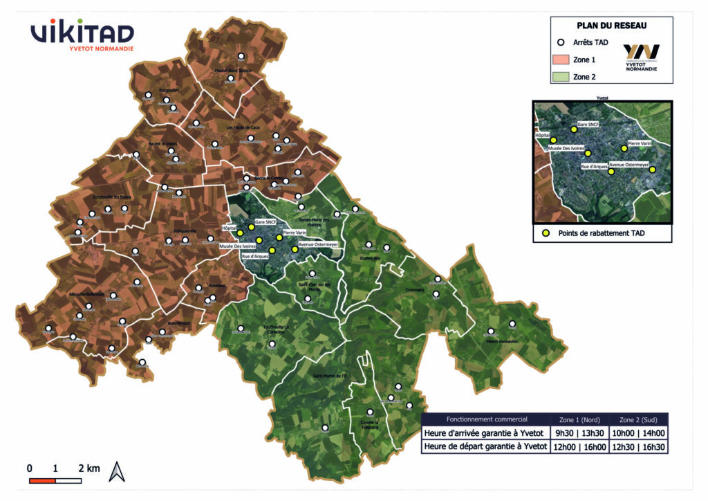 Viki’TAD est le service de transport à la demande mis en place sur le territoire d’Yvetot Normandie. Pensé pour compléter le réseau urbain Vikibus, il permet aux habitants des communes situées en dehors des lignes régulières de rejoindre facilement Yvetot et ses principaux points d’intérêt : centre-ville, commerces, services publics, équipements de santé, gare, etc. vikibus.fr